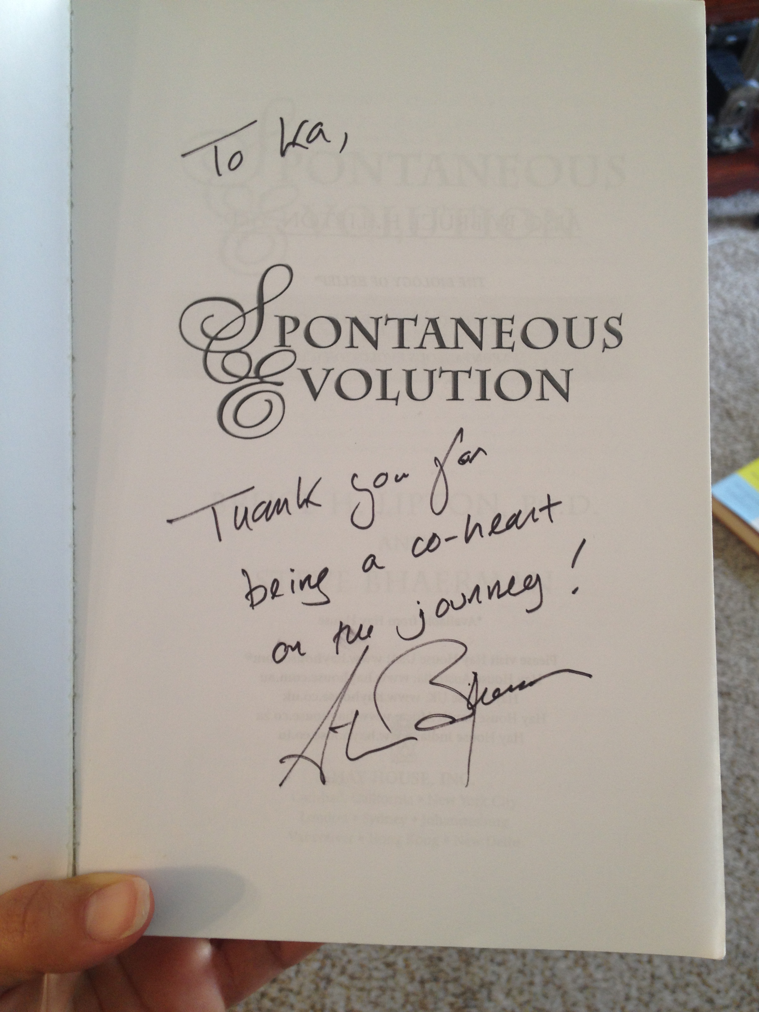 In 2012, luckily, I “ran into” both Steve Bhaerman and Bruce Lipton. Isn’t it interesting how that happened? I didn’t see these co-authors at the same time, nor did I see them in the same place. In fact, I didn’t even realize until now that I met both of the authors within roughly a year’s time – a year of massive change – 2012. If I did realize it, I probably forgot it already.