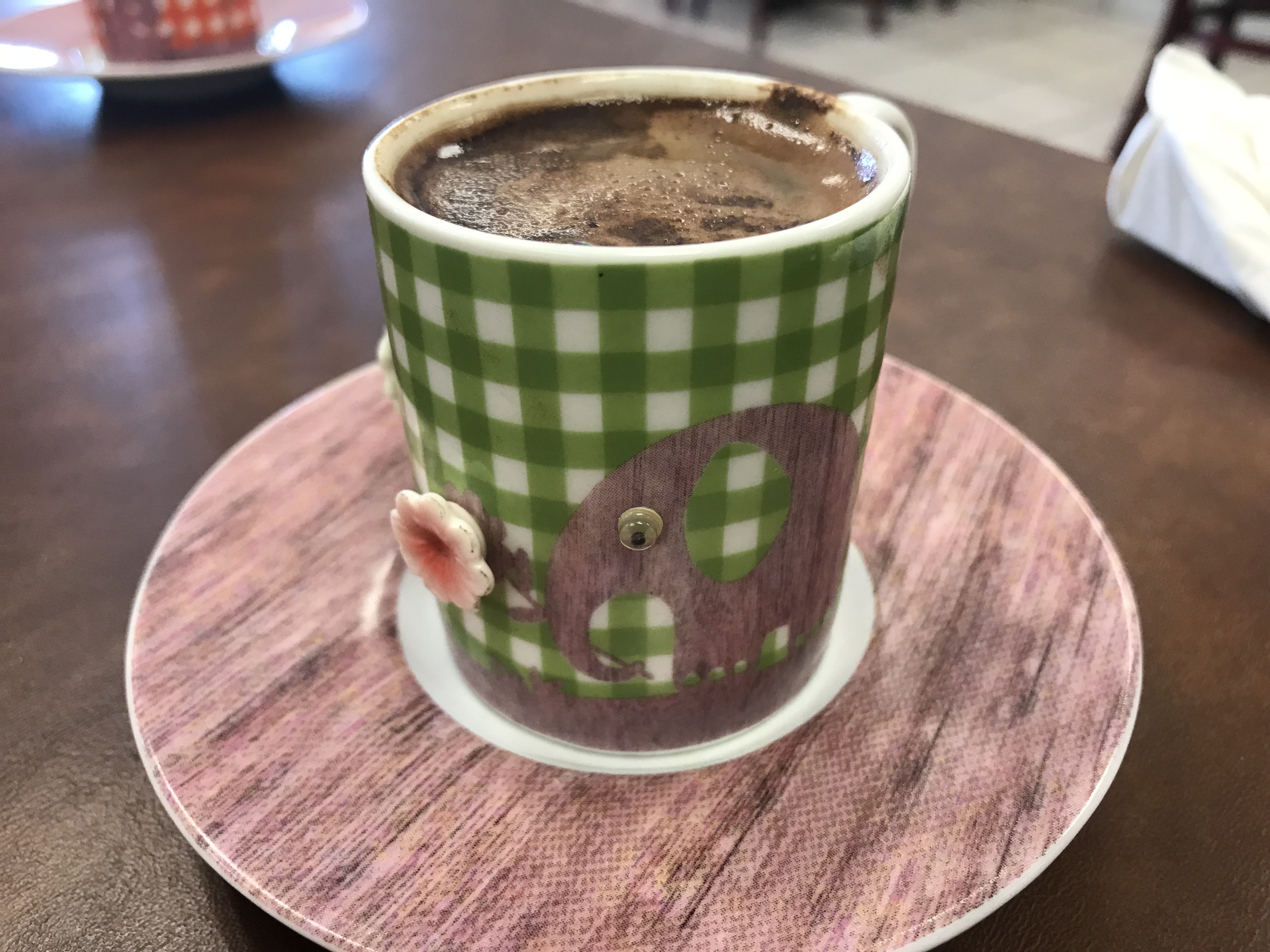 This is a picture of one of the most wonderful Turkish coffees I’ve ever had. Note the elephant.