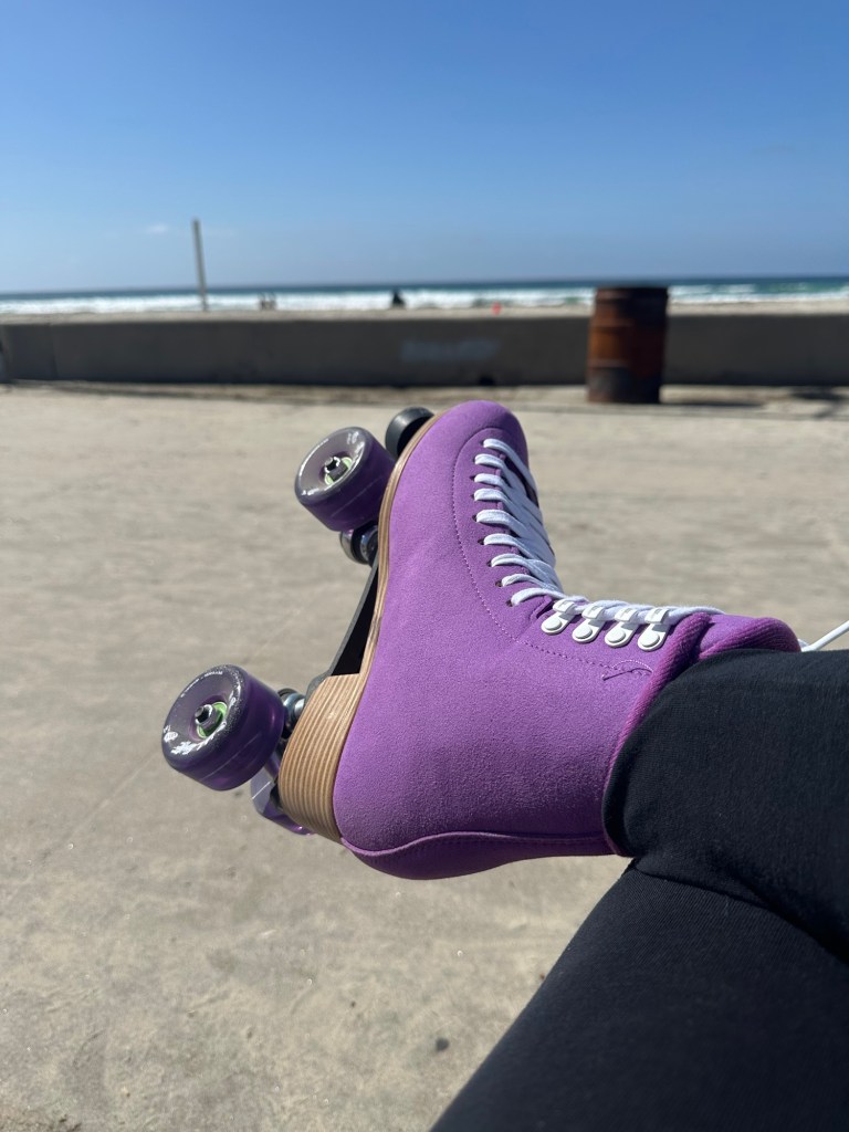 But… Before I could write this post, I also needed to treat a patient in my private practice, and now I want to get this blog post done before my meeting in 40 min. So I will write quickly, but efficiently. (Did I mention that I roller-skated for two hours on Sunday!?) The picture above was from the time I rollerskated before that. I got new skates a few weeks ago! The old Chicago skates were not meant for the serious skater. I went into the store to get a new stopper for the toe tip, and asked about the stability around the plates on the mounting hardware; as a result the woman directed me to buy new skates. I decided since I want to keep my wrists, spine, knees, and all my bones healthy–reduce the chance for falls, I ought to update my skates!